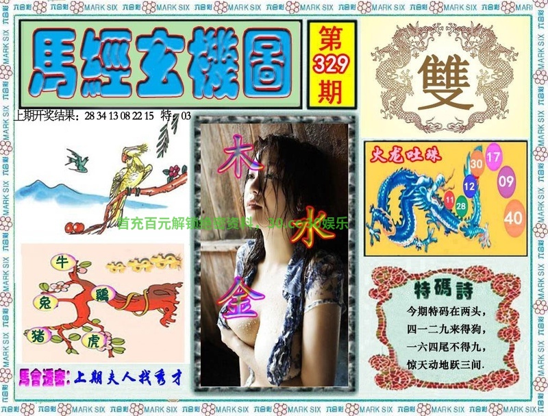 330期马经玄机 特碼詩:一生辛苦不得财,耕田种地无财发,不知赌钱搏大彩,看中特码落大注. 解肖:虎牛鼠兔猴 |